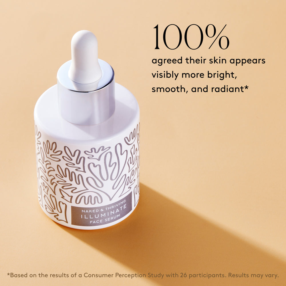 Illuminate BC+ Brightening Serum. Water, Aloe barbadensis (Aloe Vera) Leaf Juice*, Glycerin*, Glyceryl Oleate Citrate, Propanediol, Tetrahexyldecyl Ascorbate, Bakuchiol, Sodium Hyaluronate, Ferulic Acid, Adansonia digitata (Baobab) Seed Oil*, Glycyrrhiza glabra (Licorice) Root Extract, Morus nigra (Mulberry) Leaf Extract, Phyllanthus emblica (Gooseberry) Fruit Extract, Terminalia ferdinandiana (Kakadu Plum) Fruit Extract, Kanzou Furabonoido, Leuconostoc/Radish Root Ferment Filtrate, Sclerotium Gum, Acacia senegal (Acacia) Gum*, Caprylyl Glyceryl Ether, Caprylic/Capric Triglyceride, Phenethyl Alcohol, Mannitol, Ergothioneine, Sodium Hydroxide, Caprylhydroxamic Acid