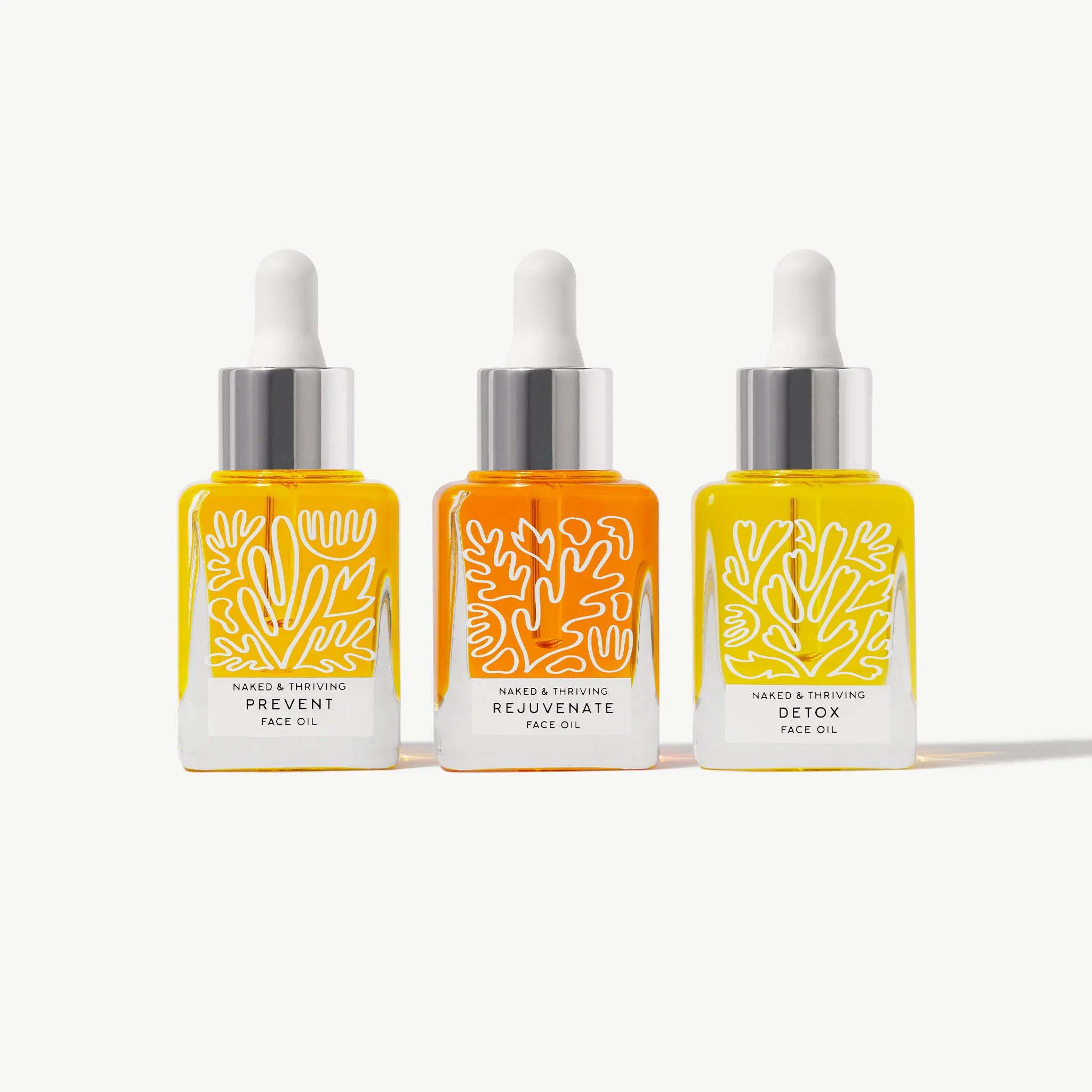 Dispense de 4 a 7 gotas en las yemas de los dedos y frótelas ligeramente. Presione suavemente el aceite sobre el rostro y el cuello limpios, distribuyéndolo uniformemente. Si tu piel necesita más humedad, repite. Deje que el aceite se absorba durante 3 a 5 minutos antes de aplicar más productos. Para obtener resultados óptimos, antes de aplicar el aceite facial restaurador Rejuvenate, el aceite facial antienvejecimiento Prevent o el aceite facial equilibrante Detox, aplique una cantidad del tamaño de un guisante de un suero hidratante, como nuestro suero nocturno Renew Resurfacing, suero de día Protect Antioxidant o Illuminate BC+ Brightening Serum y deja que se absorba durante 2-3 minutos.