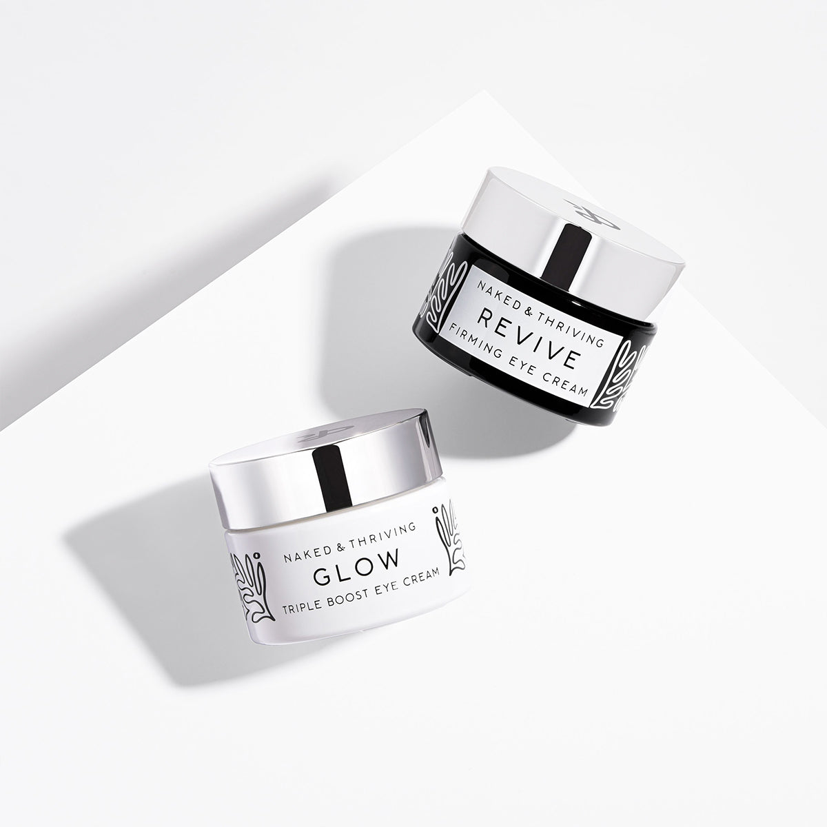 Create the perfect morning and evening routine with these multi-correctional eye creams. Reveal bright, hydrated eyes in the morning with Glow Triple Boost Eye Cream. At night restore the eye area with nourishing active botanicals designed to target fine lines, wrinkles, and dark circles with Revive Firming Eye Cream. Enjoy this Limited Edition Gift Set at a special discount for a limited time.