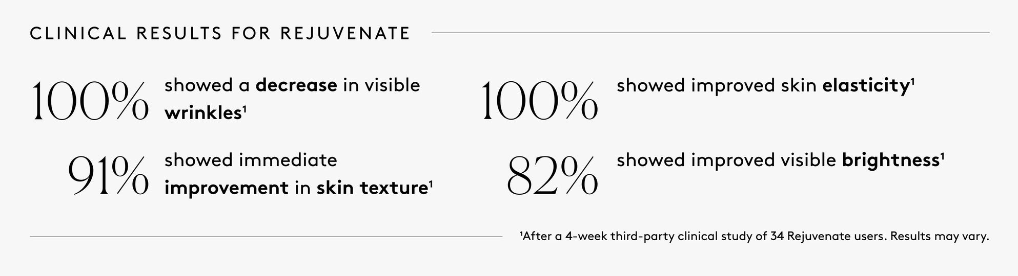 Rejuvenate Restorative Face Oil: Dispense 4-7 drops onto fingertips and rub together lightly. Gently press oil onto clean face and neck, distributing evenly. If your skin needs more moisture, repeat. Allow oil to absorb for 3-5 minutes before applying further products. For optimal results, before applying Rejuvenate, apply a pea-sized amount of a hydrating serum, such as our Renew Resurfacing Night Serum, Protect Antioxidant Day Serum, or Illuminate BC+ Brightening Serum, and allow to absorb for 2-3 minutes.