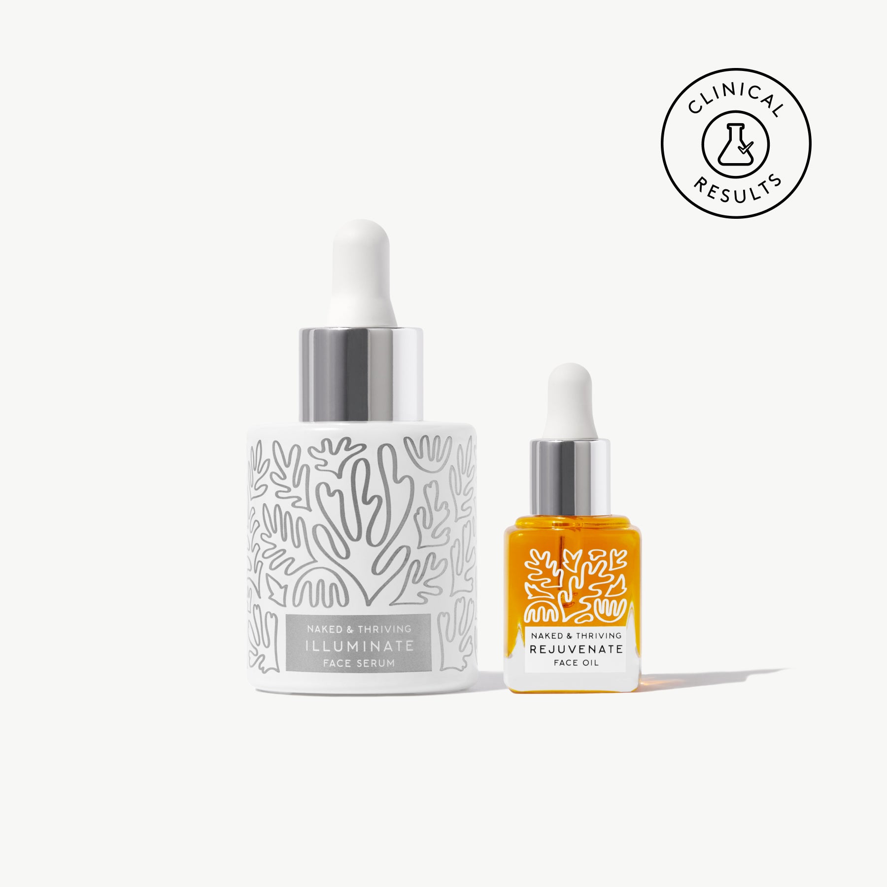 Fade the appearance of dark spots and boost luminosity with this duo of clinically proven formulas. Full-size Illuminate helps brighten and even tone daily, while travel-size Rejuvenate delivers nourishing hydration on the go for a healthy, radiant complexion.
